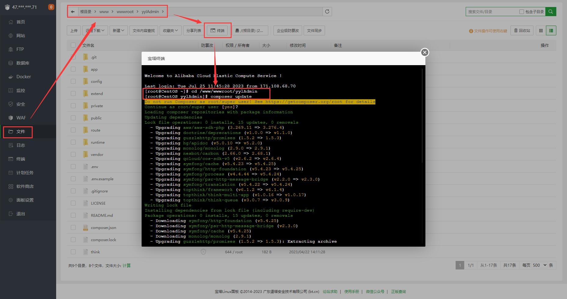 安装php依赖(如果未上传依赖vendor文件夹)。