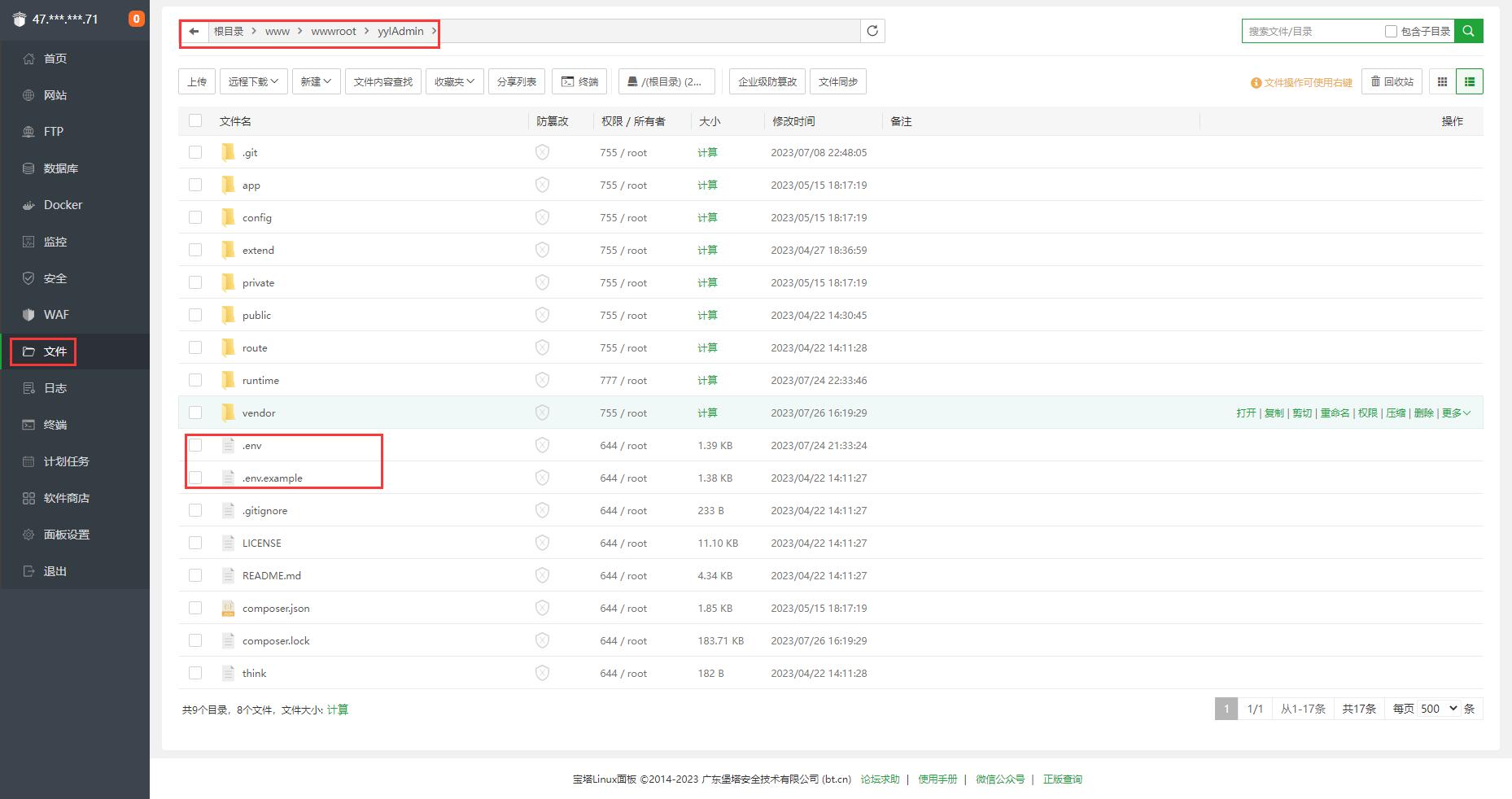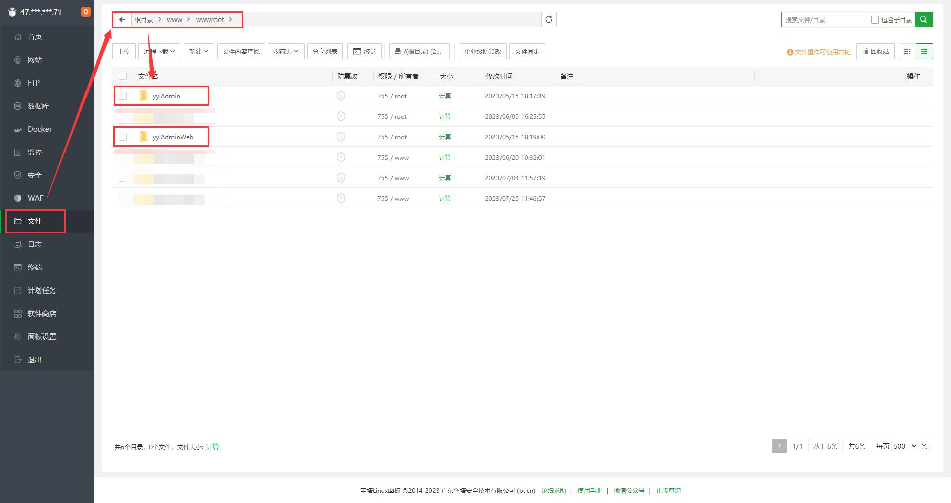 上传(git、ftp)代码到宝塔面板/www/wwwroot目录。