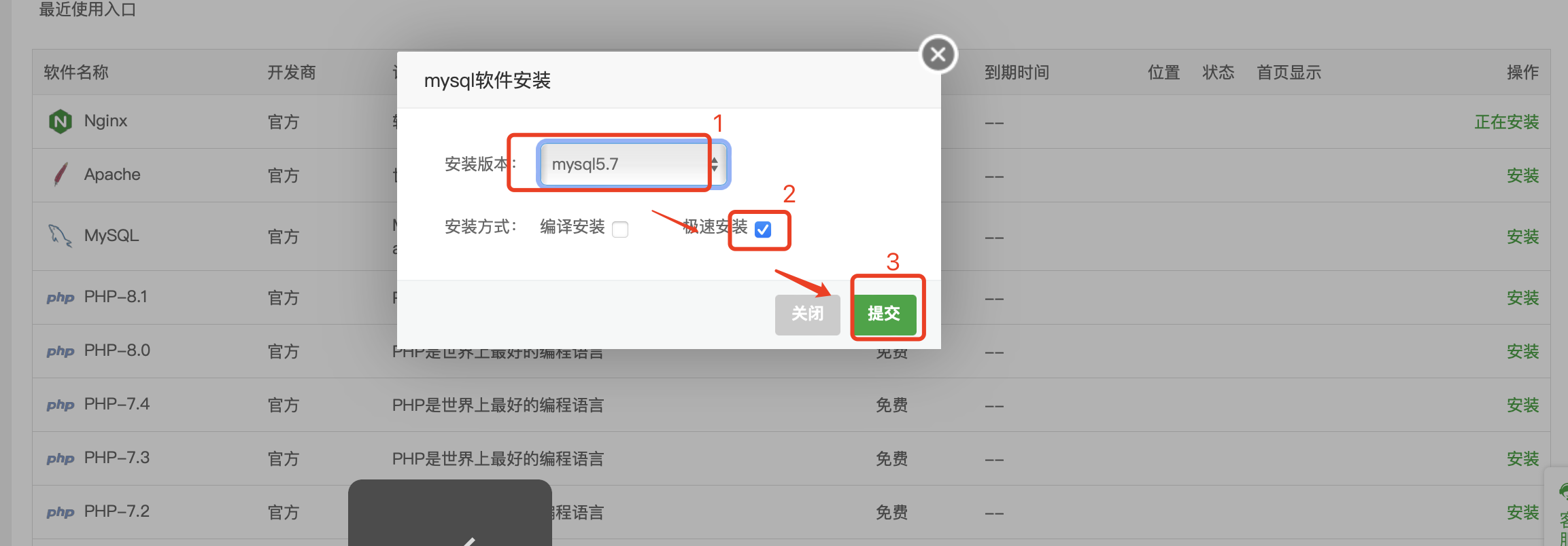 安装软件的时候,使用极速安装,避免出现一些环境引起的问题。